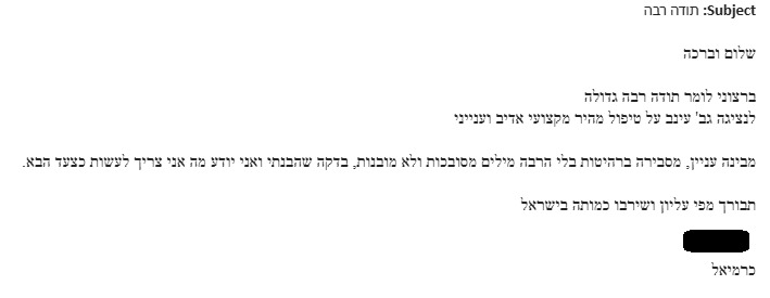 הלוואי וכל נותני השירות במדינה היו יעילים ואדיבים כמוך!